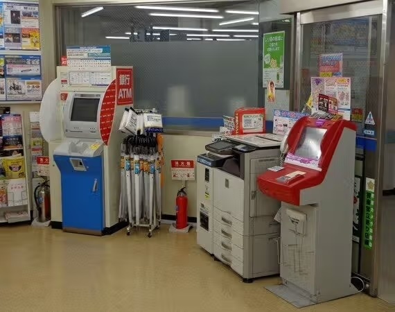 Οι περισσότεροι από εμάς μπορούμε να φέρουμε στο μυαλό μας την εικόνα ενός ψιλικατζίδικου ή μίνι μάρκετ μιας ελληνικής γειτονιάς. Στην Ιαπωνία, τα μίνι μάρκετ ανήκουν σε 3-4 μεγάλες αλυσίδες (Lawson, Seven Eleven κα), είναι ευρύχωρα, πανταχού παρόντα, λειτουργούν σε 24ωρη βάση όλο το χρόνο και τις αργίες και πέρα από ένα πλήθος φθηνών προϊόντων που μπορείς να αγοράσεις, μεταξύ των οποίων και ζεστό φαγητό, έχεις και τη δυνατότητα να πληρώσεις φως-νερό-τηλέφωνο, να βγάλεις φωτοτυπίες και, μέσω ειδικών τερματικών, να αγοράσεις εισιτήρια συναυλιών και θεαμάτων και να πληρώσεις για υπηρεσίες ή προϊόντα που αγόρασες στο ιαπωνικό διαδίκτυο, χωρίς πιστωτική κάρτα (από βιβλία που ψώνισες στην Amazon μέχρι αεροπορικά εισιτήρια της Japan Airlines για Αυστραλία). Α, και τα περισσότερα έχουν εγκατεστημένο και ΑΤΜ για ώρα ανάγκης. Δεν είναι τυχαίο που τα μαγαζιά αυτά λέγονται «κόνμπινι» στα ιαπωνικά, από την παραφθορά του αγγλικού “convenience (store)”.